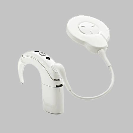 - An external sound processor and microphone